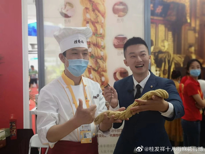 桂发祥为参加本次消博会,桂发祥做了精心准备,红色背景的展区内展示了品牌的历史和特色产品,一个1.1米长的大麻花颇为惹眼,这是桂发祥十八街麻花带来的“吸睛利器”,桂发祥十八街麻花中最传统的技艺是搓制技艺,为了在展会中更好地展现这个传统工艺,桂发祥特意让工匠师傅在现场演绎麻花的搓制技艺,引来不少观众的关注。