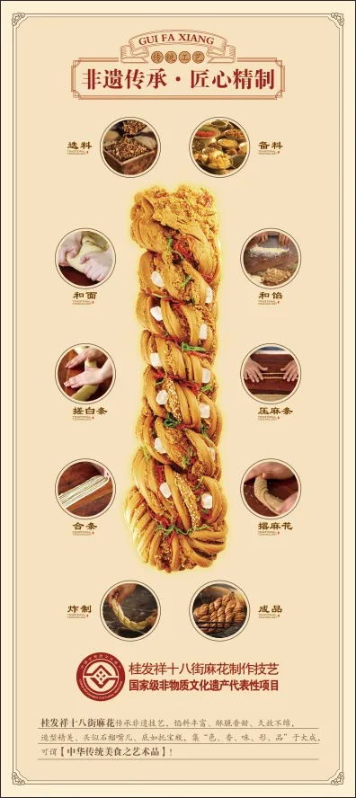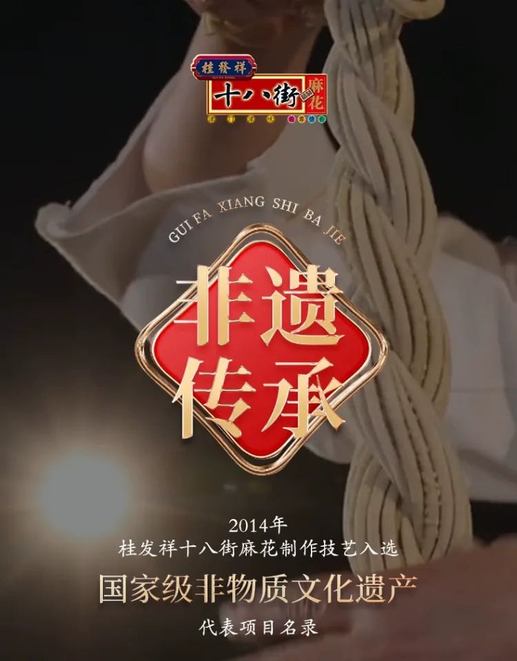 桂发祥十八街麻花始创于1927年,掌柜刘老八,因店铺地处东楼十八街,故得名“桂发祥十八街麻花”。十八街麻花制作技艺在2014年成功入选国家级非物质文化遗产代表性项目名录。时至今日,“桂发祥十八街麻花”传承经典老味道,将工匠精神内化于心、外化于形,融入每一个制作环节,将传统制作工艺延续发展。
